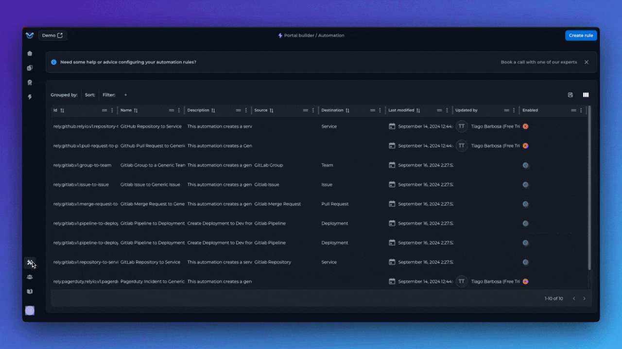 Once you are done you should see a list of the services you added in your [Service Catalog](https://webapp.rely.io/software-catalog/service/list).